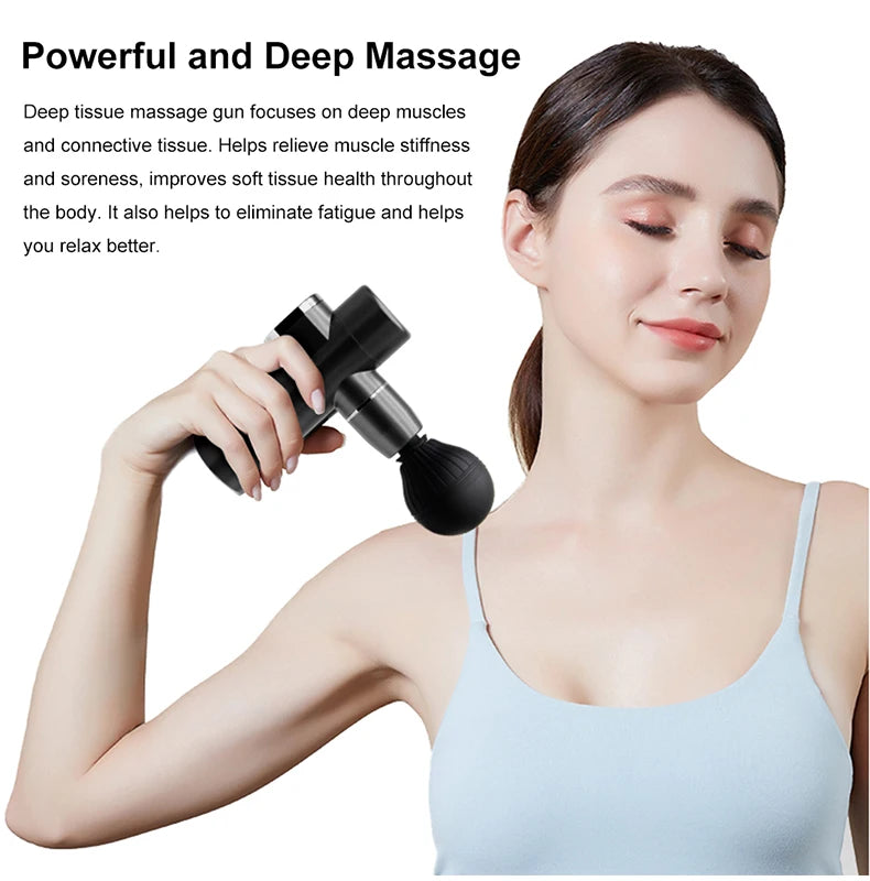 - Powerful and Quiet Motor: Despite its compact size, the mini fascia gun delivers powerful percussive therapy with minimal noise, allowing you to relax without distractions.